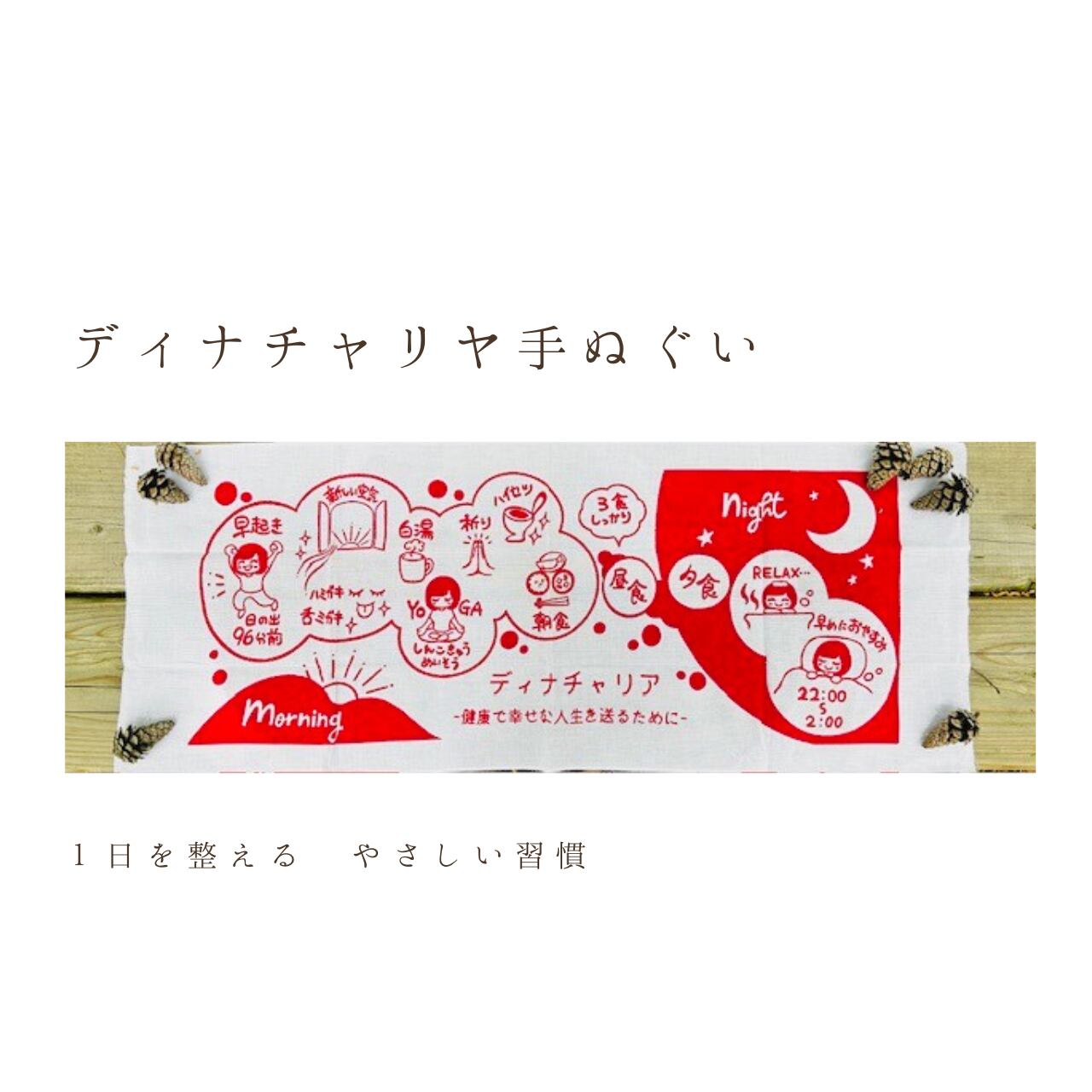 この手ぬぐいでは、朝の目覚めから夜の就寝までの流れをイラストでわかりやすく表現しています。